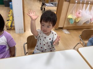 絵本が終わった後、子どもたちに「おうちのお風呂でゴシゴシシュッシュッしてる