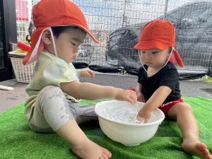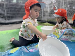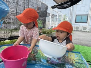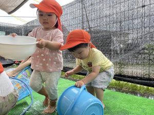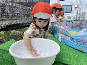 子どもたちがお水遊びを思いっきり楽しめるよう、安全面に気をつけながら取り組んでいきたいと思います![]()
