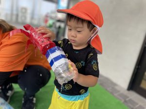 ペットボトルからお水が流れていく様子や音を楽しむ姿も![]()