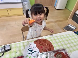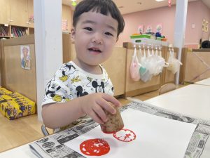 野菜スタンプがとっても楽しかったようでこんな素敵な笑顔も見られました![]()
