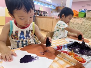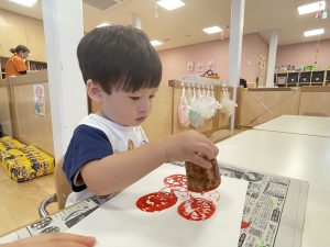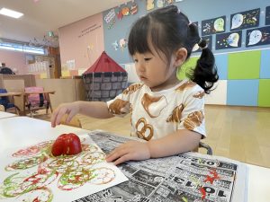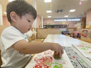 いろいろな野菜を触ったあとはいよいよスタンプ遊び![]()