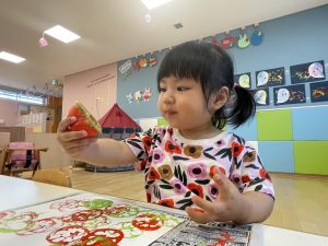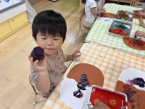 いろいろなお野菜を自分たちで選んで、たくさんスタンプ遊びができました![]()