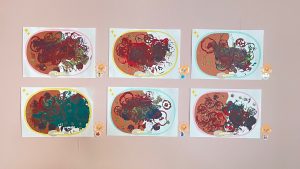 レンコンのスタンプをたくさん押したあとに穴の中をじっくり観察![]()