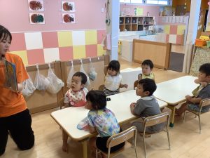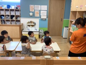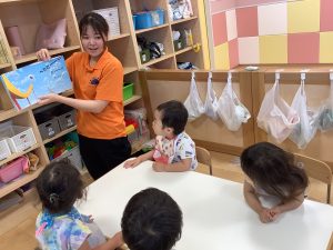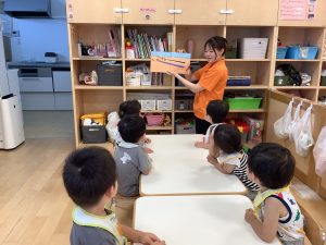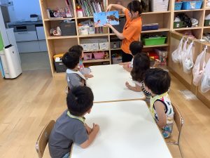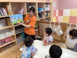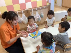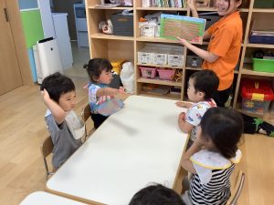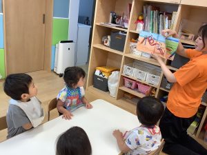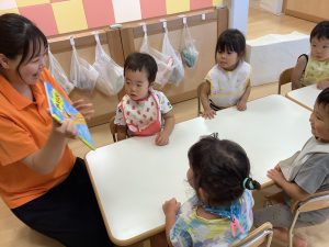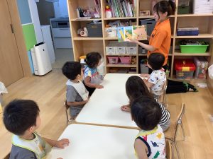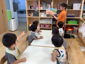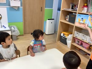 今週は【2歳児🍎りんご組】さんのおやつ前の絵本の様子をご紹介します📚