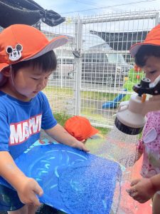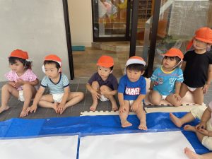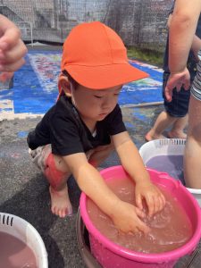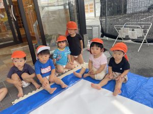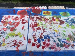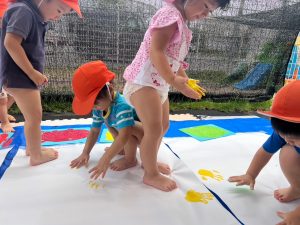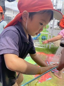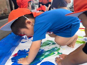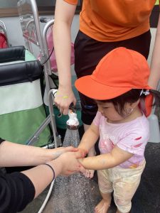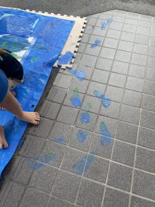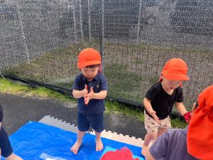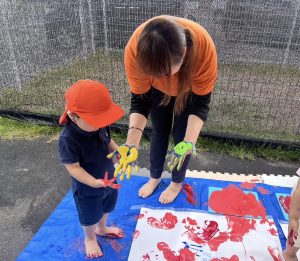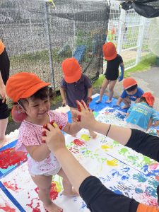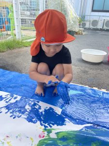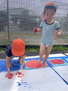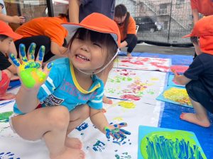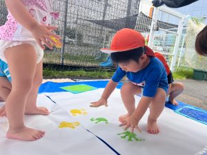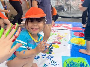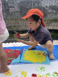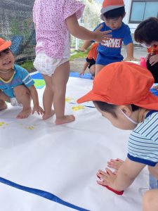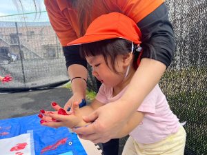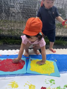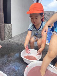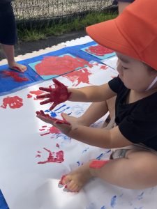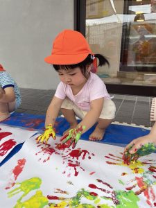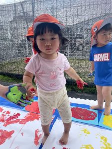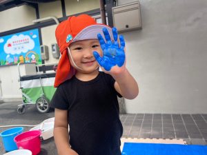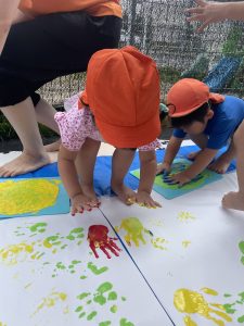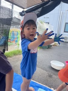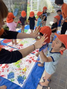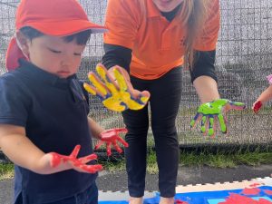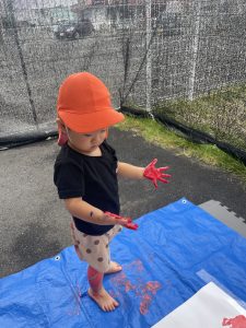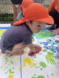 手型がつくと自分の手と手型を見比べる可愛い姿も