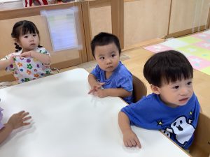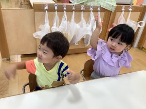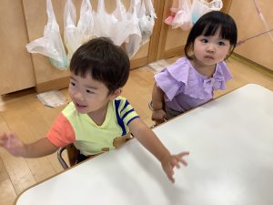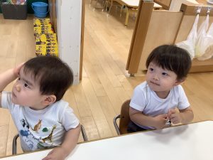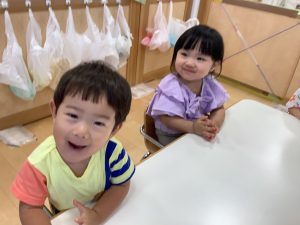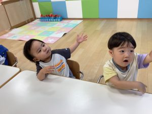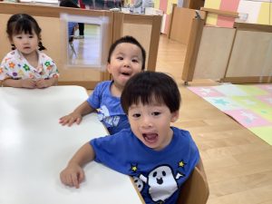 自分の名前を言うと、とっても達成感のあり表情を見せてくれる可愛い子どもたちです![]()