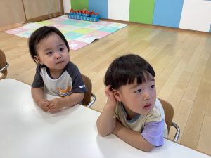 保育者の真似をして一緒に聞いてくれる可愛い姿も![]()