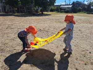 お友だちと息を合わせてよいしょよいしょ