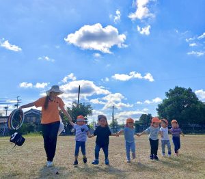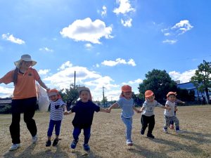 お友だちや保育者と手を繋いでかけっこ