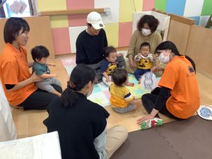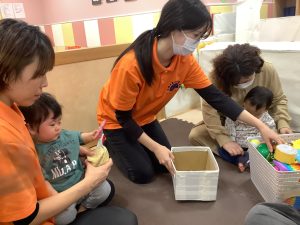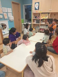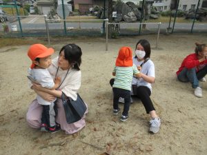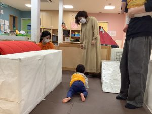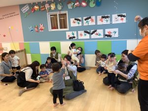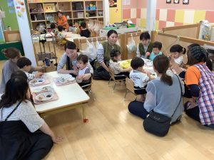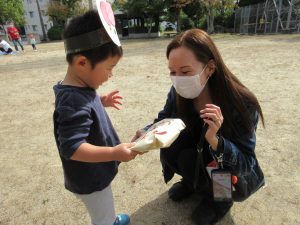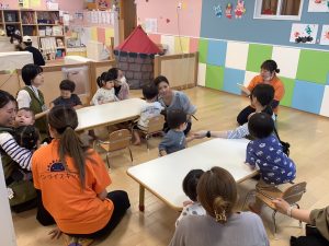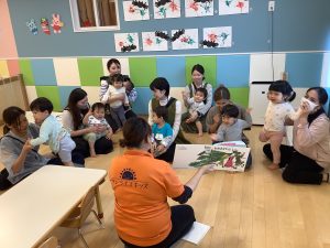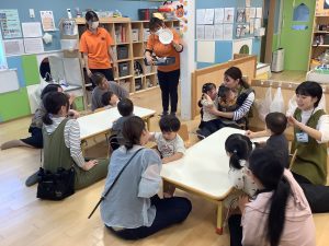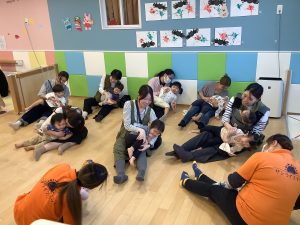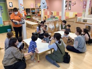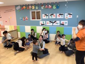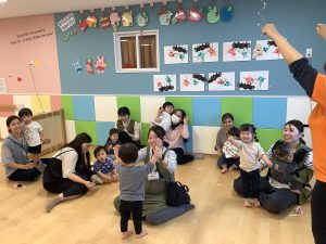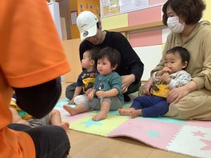 中にはお迎えだと思って涙するお友だちもいましたが、しばらくすると泣き止んでくれました![]()