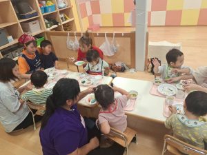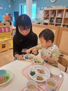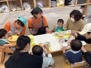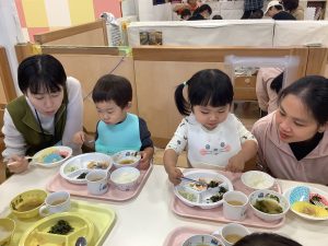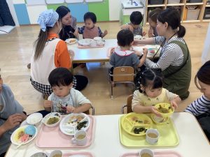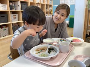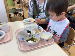 保育園でどんな給食をどんなふうに食べているのかを見ていただきました![]()