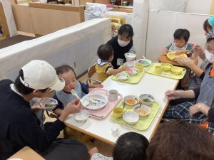 お母さんとお話しながら食べる給食はいつも以上においしいね![]()