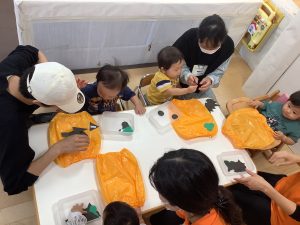 全員集まってからはハロウィンの衣装作りを保護者も方と一緒にしました🎃