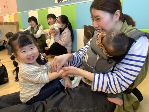 楽器遊びの後は手遊びと触れ合い遊び![]()