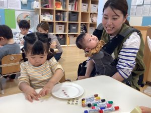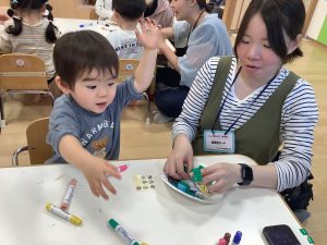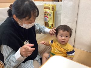 保育者が歌い始めると喜んで一緒にしてくれていました![]()