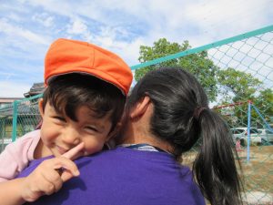 お母さんたちが来てくれると大喜びの子どもたち![]()
