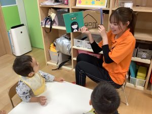 今週は【2歳児🍎りんご組】さんの絵本の様子をご紹介します
