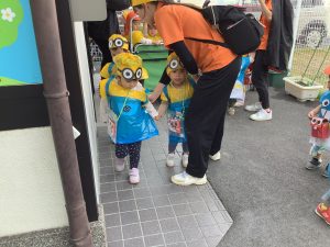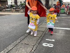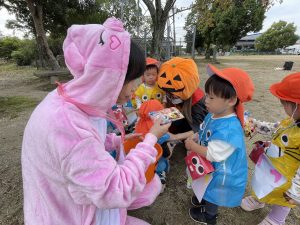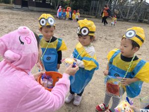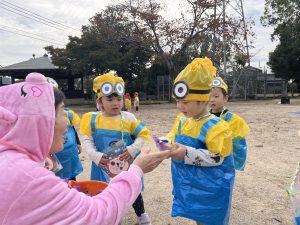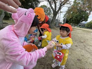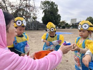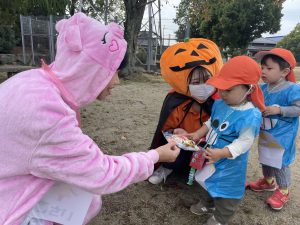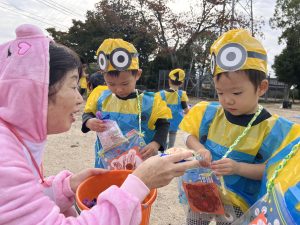 ドキドキしながらお菓子をもらいに行くよ![]()