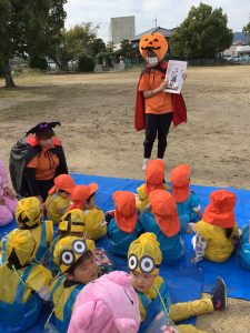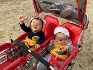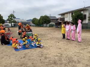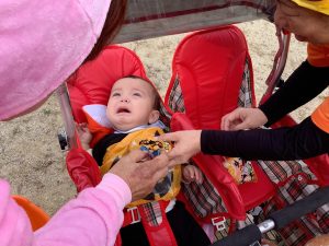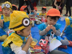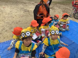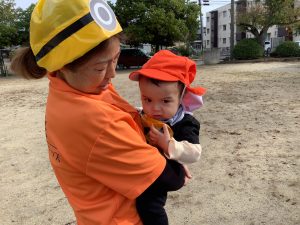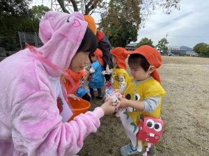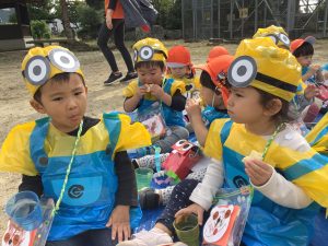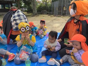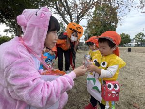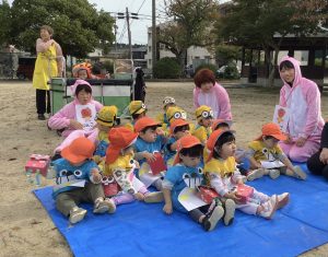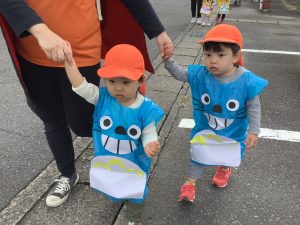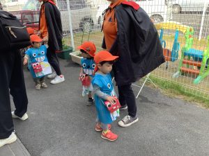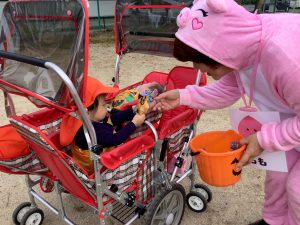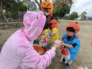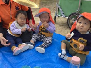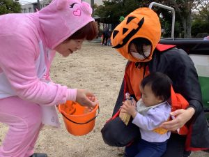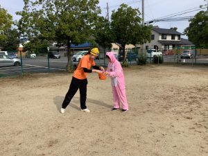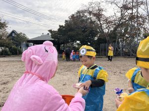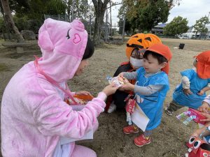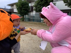 公園に着くと可愛いブタさんの仮装をした子ども食堂さんたちが待っていてくれました![]()