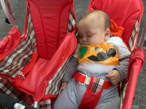 保育園に着いたころには…気持ちよさそうに夢の中の0歳児さんでした![]()