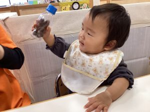 ドングリが動く様子が楽しいようで保育者にも見せてくれました