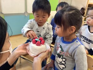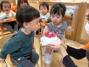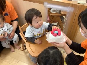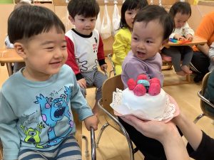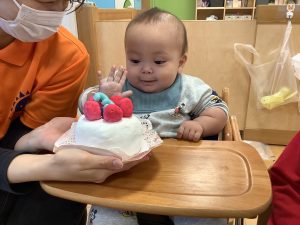 最後はお誕生児さんにケーキを食べさせてもらったよ