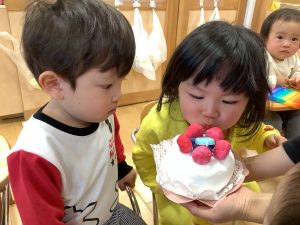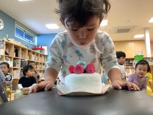 お誕生児さんにロウソクふぅーっとしてもらいました