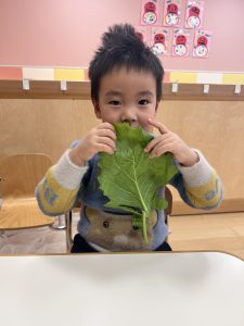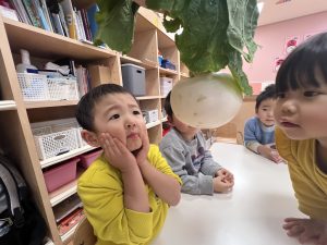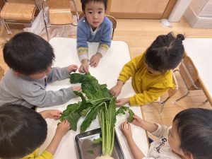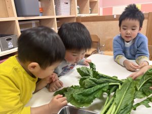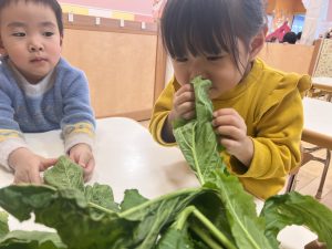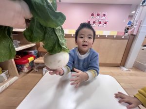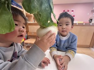 今週は2歳児クラスのお友だちが食育活動でカブに触れた様子をご紹介します![]()