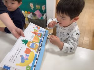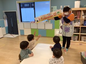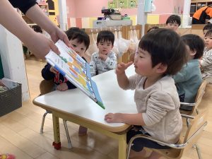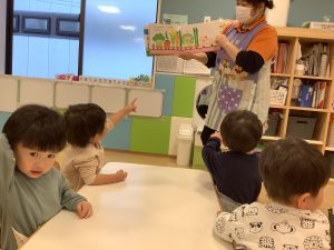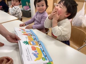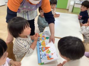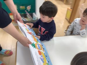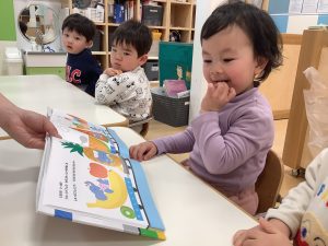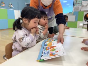 今週は1歳児クラスの絵本の様子をご紹介します![]()