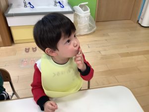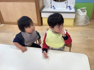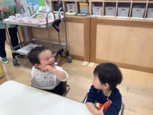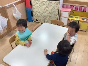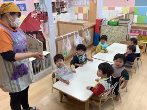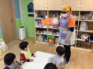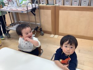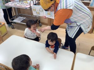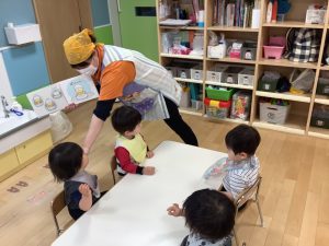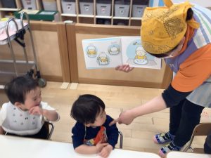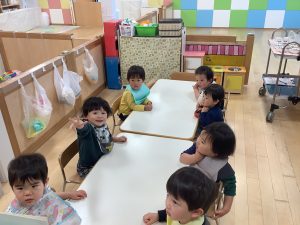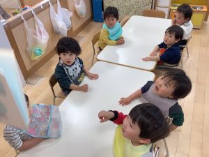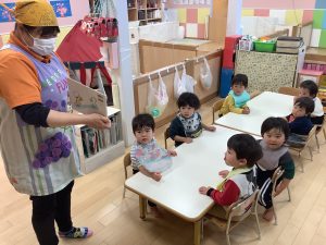 今週の絵本ブログは2歳児さんと1歳児さんの夕方おやつの時間の絵本の様子をご紹介します![]()