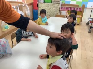 保育者が「こねて 伸ばして…」と読むと