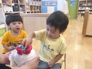お誕生児さんは上手に3歳になったことを教えてくれました![]()