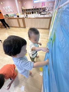 0歳児のお友だちは貼るよりはがしたかったよう