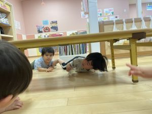 机の下にも隠れてるかな〜
