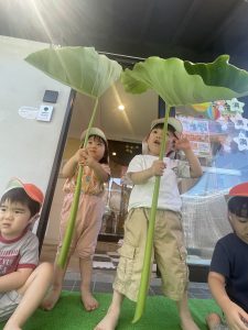 里芋の葉っぱでも遊んだよ![]()