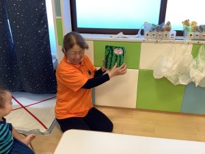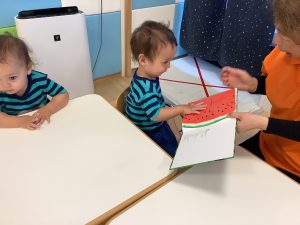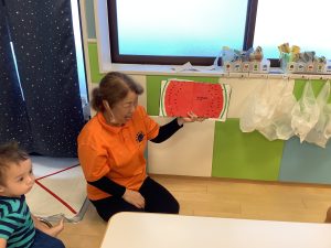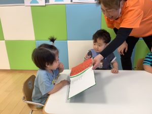 種探しよりもおいしそうなスイカをいち早く食べたい子どもたちでした