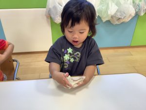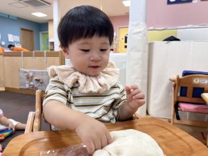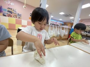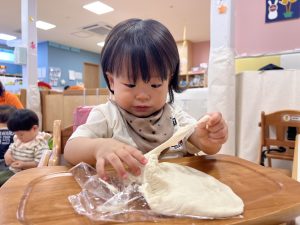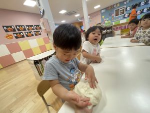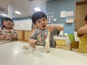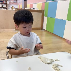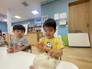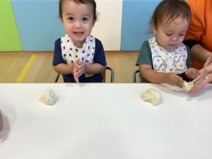 初めての小麦粉粘土に興味津々![]()