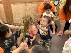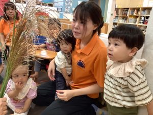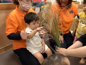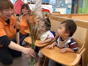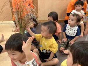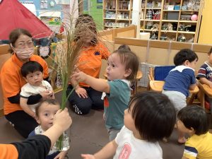 保育者がススキを出してくると![]()