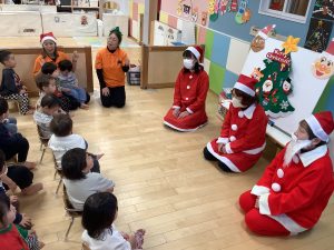 サンタさんがたくさん来てくれたことに驚く子どもたち