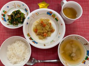 サンライズキッズ保育園 ◎給食の様子 今日は、キーマカレーで園内はカレーのいい匂いでいっぱいになり、...