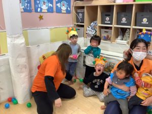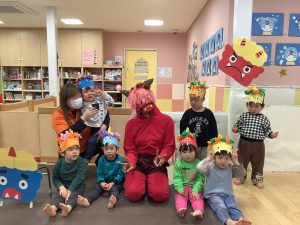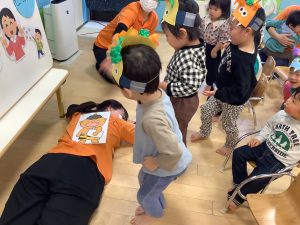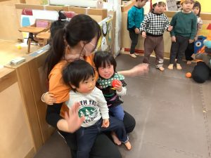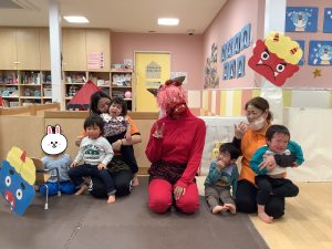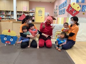 鬼を初めて見る0歳児のお友だちもビックリしていました![]()