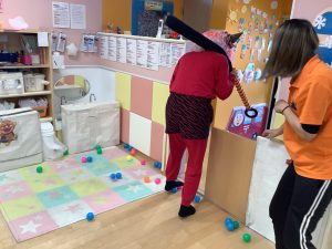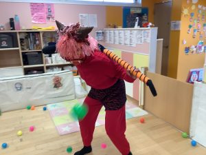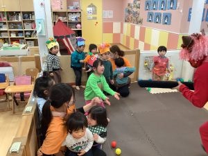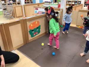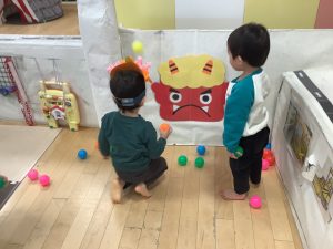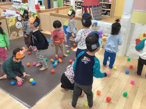 元気いっぱいにカラーボールで鬼は外![]()