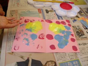絵の具と筆と画用紙を使って『デカルコマニー』をしました。