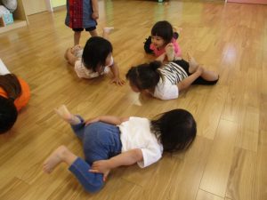 足を揃えてのジャンプはまだ難しいけれど、みんなうさぎになりきってます。