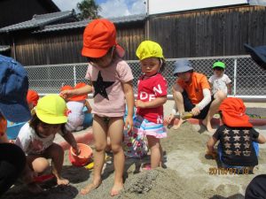 湖南石部園では、水遊びの他にも泥んこ遊びも楽しんでいます。