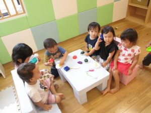 さて、以前保育士が牛乳パックで作ったテーブルと椅子をご紹介しましたが、みんなも直ぐに気に入ってくれました♪