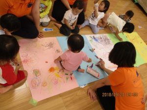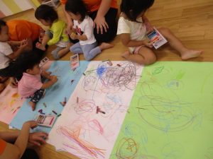 絵を描くのが大好きな子どもたちは、クレパスを使ってそれぞれ楽しそうに描く姿が見られました!