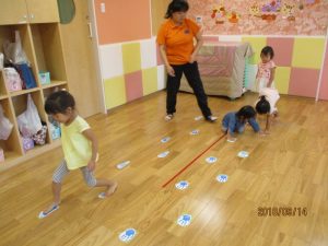 足形・・足形に合わせて歩いて進む
