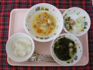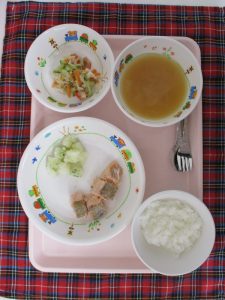 ★幼児食★ ・照り焼きチキン ・スパゲッティサラダ ・味噌汁 ・ご飯
