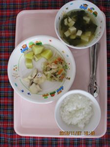 2018.11.07|給食ピックアップ 11月7日(木)のお給食(^O^) ★離乳食後期★ ・煮魚 ・茹でさつま芋 ・ビーフンソテー ・お粥 ・味噌汁 ★幼児食★ ・タラの味噌煮 ・さつま芋の甘煮 ・ビーフンソテー ・ごはん ・味噌汁 前へ 次へ